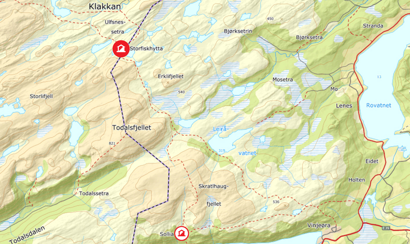 Jeg har vært på Sollia to ganger, men aldri gått fra Vinjeøra til Storfiskhytta. Lang tur, vel 13 km én vei. Jeg har ingen planer om å ta den turen.